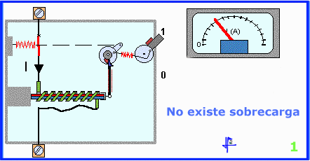 En caso de sobrecarga la deformación de la lámina bimetálica provoca la apertura de los contactos.