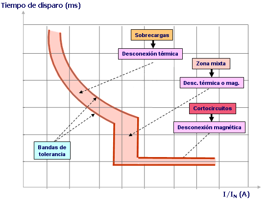 Selectividad cronométrica. El interruptor que esté aguas abajo debe cortar el circuito en un tiempo inferior al de aguas arriba para una misma sobreintensidad